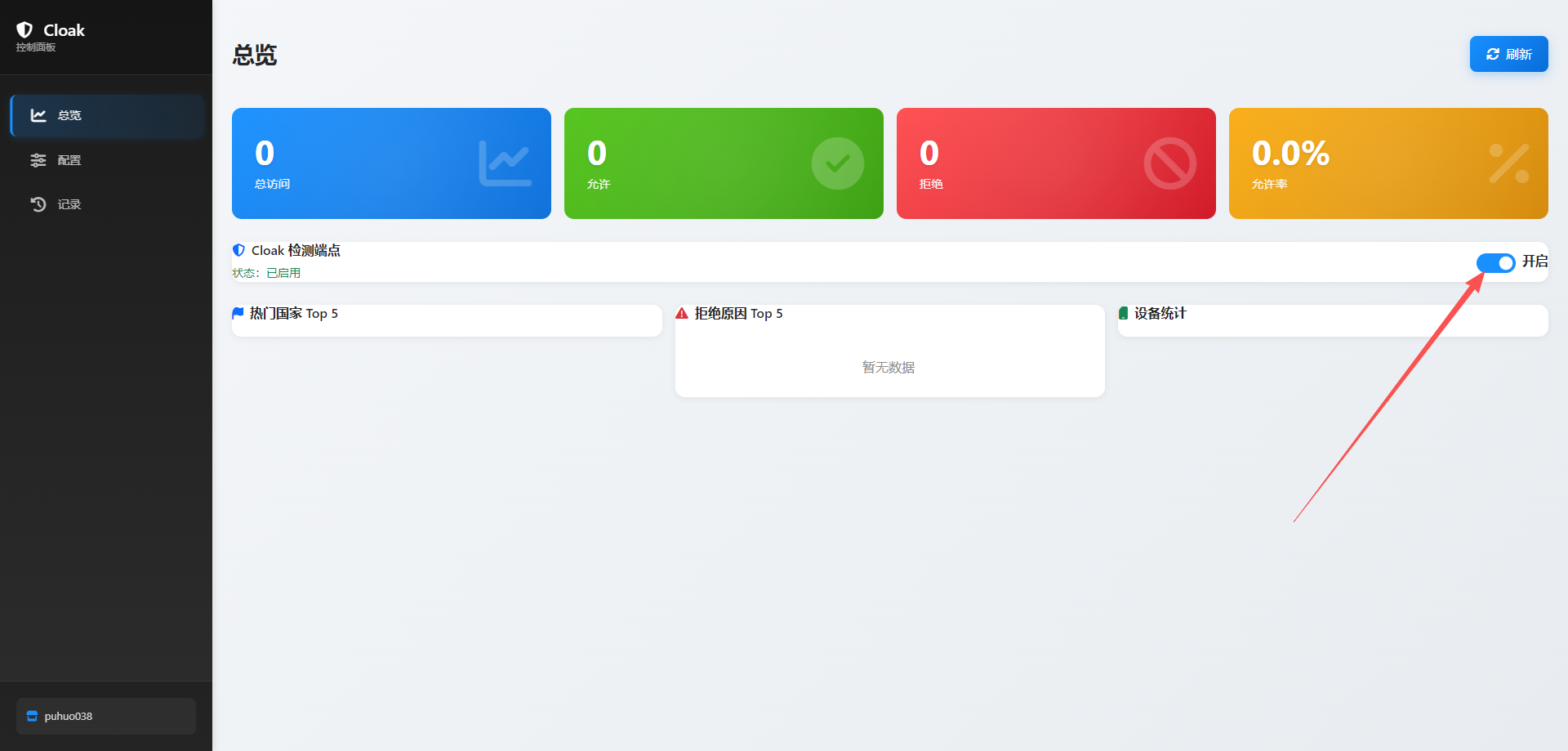 安装好了之后进入斗篷,确保如下图是开启状态,没事不要关闭!