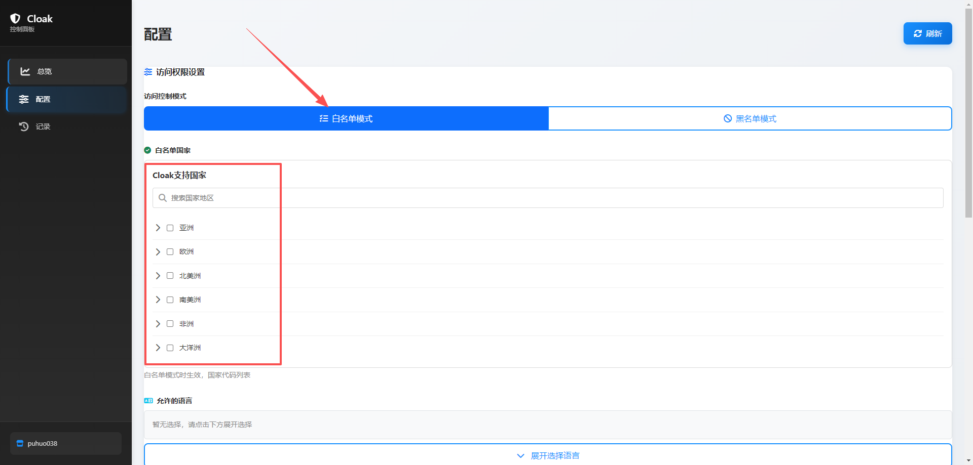 白名单是允许哪些国家访问,黑名单是禁止哪些国家访问.